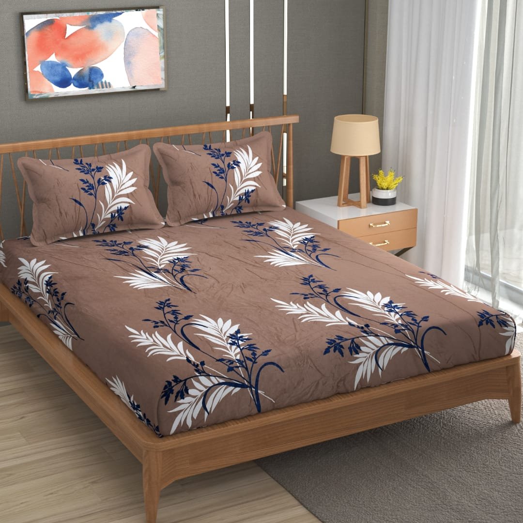 Leaves brown Winter Bedsheet with 2 Pillow Cover